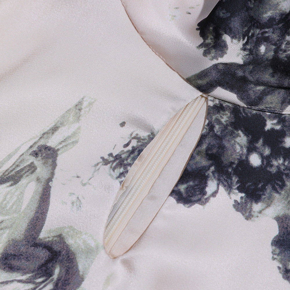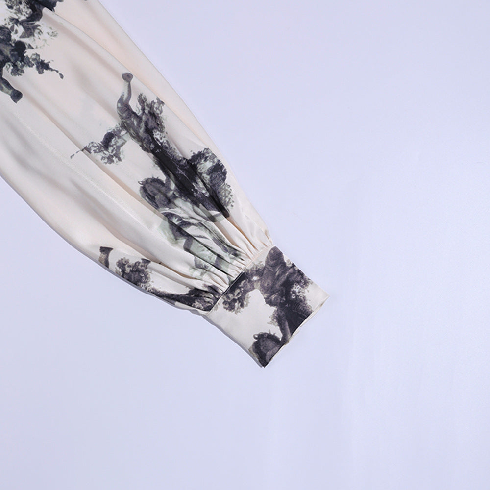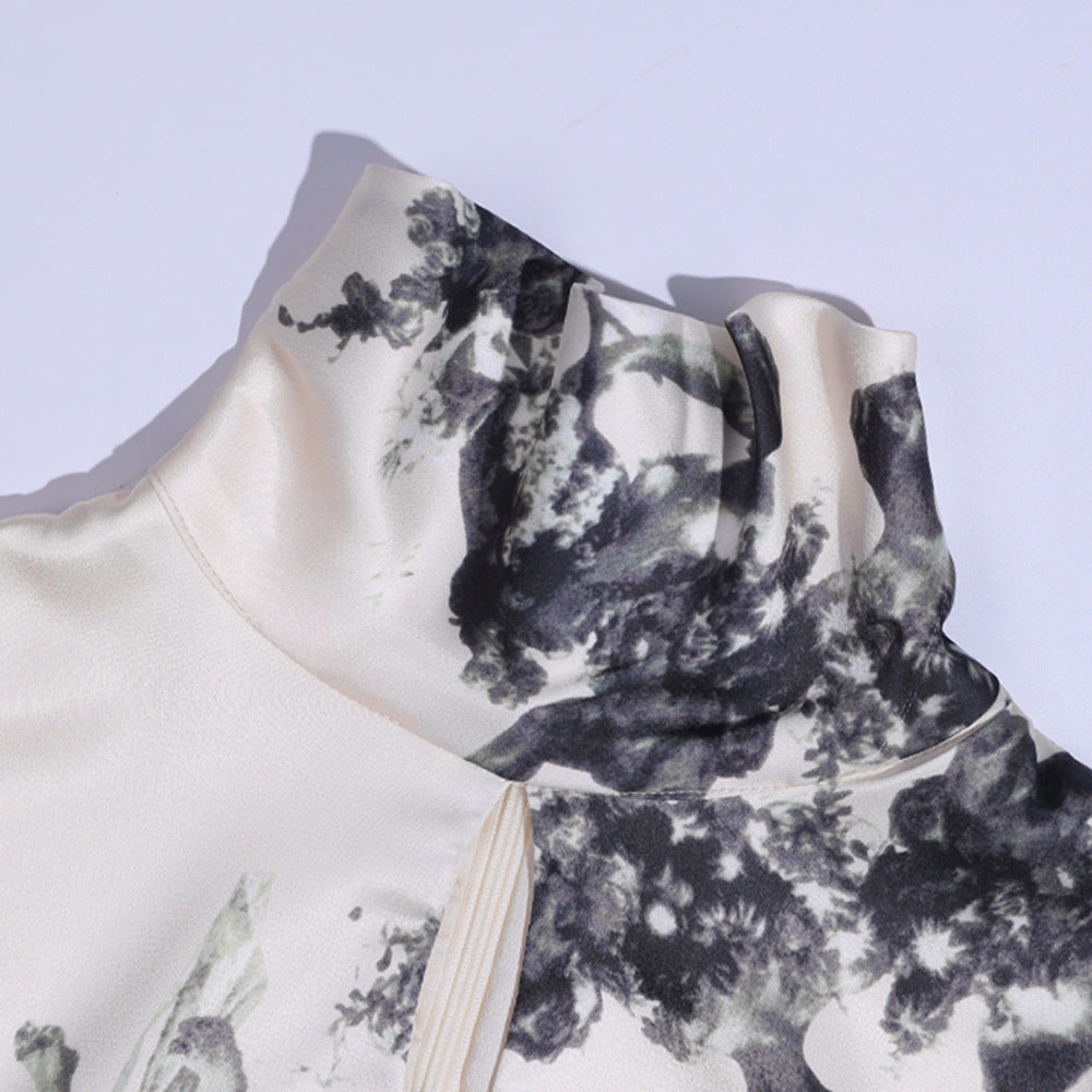 Glossy Retro Dress Women's Hollow Stand Collar