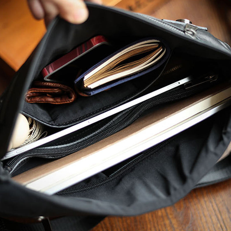 Men's Leather One Shoulder Crossbody Bag A4 File Bag Handheld Briefcase