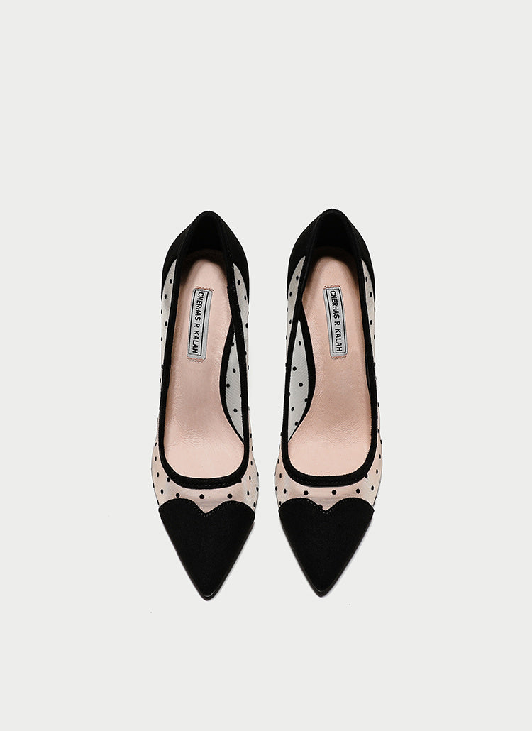 Pointed Toe Breathable Mid-heel Hollow Polka-dot Shallow Mouth Single Shoes Women