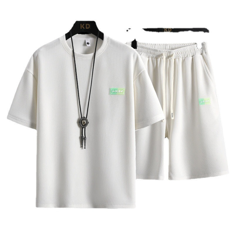 Waffle Cotton Breathable Plaid Fabric - Mens Casual Two Piece Set
