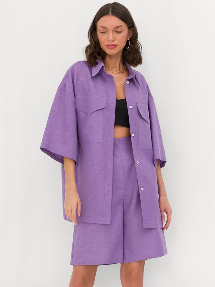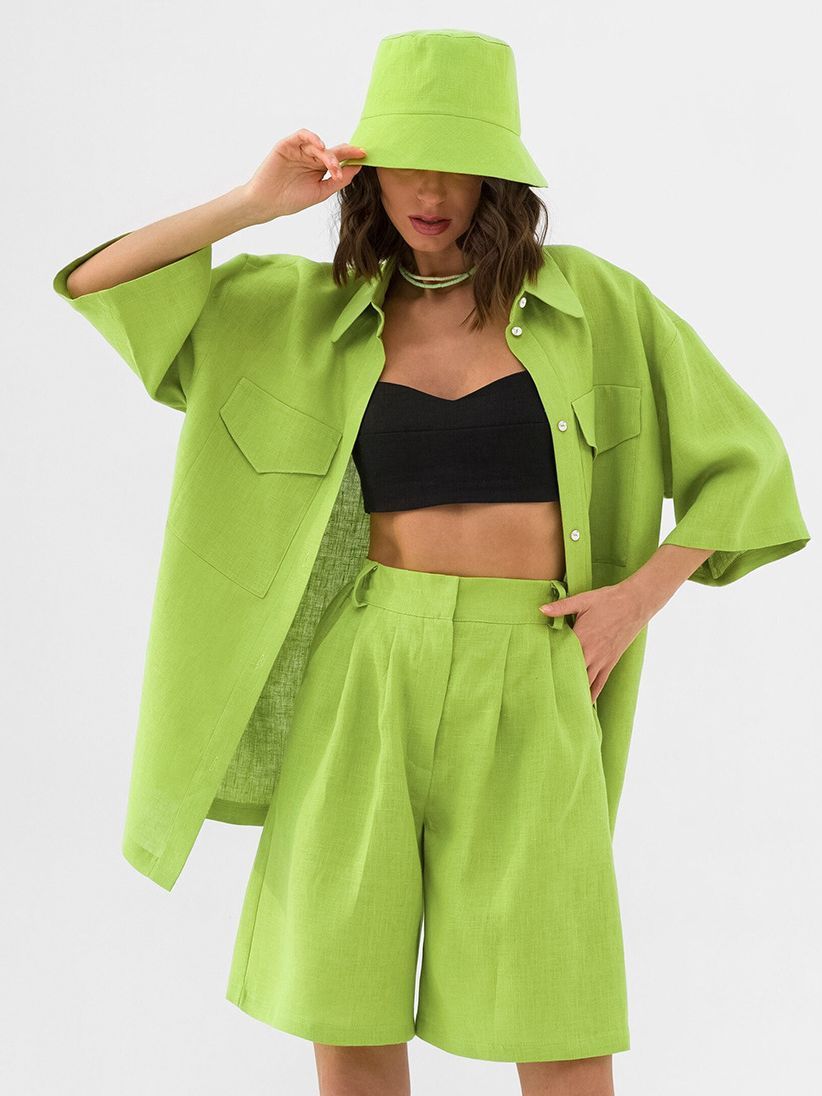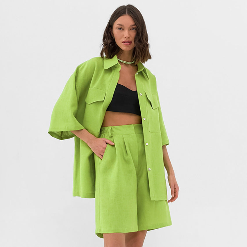 Women's Fashionable Simple Cotton And Linen Top And Shorts Two-piece Set